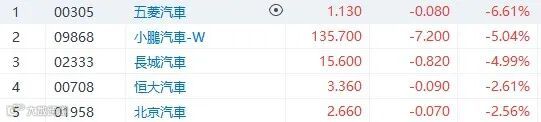 汽车股徧弱,其中长城及吉利跌势未止。2月14日,长城经销商称接到黑猫白猫汽车停止接单的通知。对于停止接单通知的传言,欧拉官方在评论区回覆称,黑白猫车型停止接单是“由于芯片短缺、零配件供应无法保证生产等诸多原因。长城(2333)跌4.99%,收市报15.6元。五菱(305)跌6.61%,小鹏(9868)跌5.04%,吉利(175)跌1.93%,比亚迪(1211)跌0.5%,理想(2015)升0.57%。