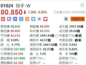 大型科技股普跌,虽然摩根士丹利发布研报,调升快手评级为增持,目标价从105上调至120元。快手仍大跌8.8%,收市报80.85元。网易(9999)跌3.63%,哔哩哔哩(9626)跌4.64%。