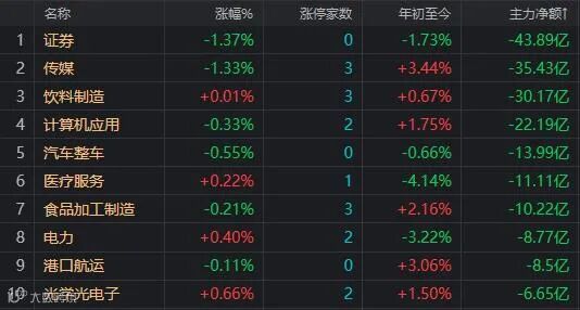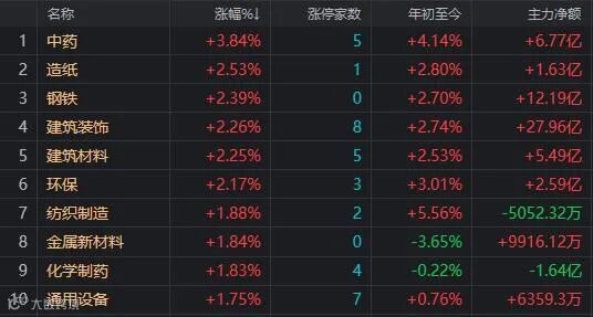 盘面上,中药板块由跌转升,居涨幅榜首,造纸、钢铁、建筑、环保等板块涨幅居前,幽门螺旋杆菌概念、盐湖提锂、冬奥会概念强势活跃,元宇宙、教育、机场航运、证券等板块下跌。