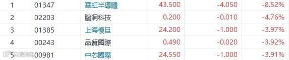 瑞信发研报指,华虹半导体今年第二季销售按季增长14%至3.46亿美元,高于指引的3.35亿美元,主要是受到中国市场(销售74%)及横跨应用所推动。而集团毛利率达24.8%,主因组合及产品均价改善。该行上调华虹半导体股份目标价,由47港元升至52港元,评级维持“中性”,并上调集团今明两年每股盈利预测。华虹半导体(1347)也被北水沽出,股价下跌8.52%,收市报43.5元。中芯(981)也受北水沽出,下跌3.91%,收市报24.55元。