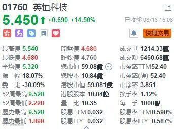 英恒科技发盈喜,预计6月止六个月纯利将较2020年同期增长不少于40%。主要由于期间整体收入预计增加50%以上,其中新能源汽车收入大幅增加。英恒科技有6亿多股票放入CCASS,相信会有大搞作,今日大升14.5%,收市报5.45元。