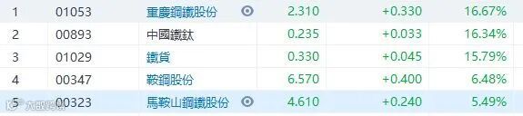 西部证券近日发研报称,三季度随着铁矿石价格的进一步下跌,吨钢毛利预计会扩张至1000元左右,甚至更高,钢铁企业即将迎来利润扩张周期。2021年上半年吨钢毛利在500元左右,进入4月份,由于铁矿石价格上涨的挤压,钢铁毛利迅速收缩至亏损边缘。马钢(323)升5.49%,重庆钢铁(1053)升16.67%,马钢(323)也升5.49%。