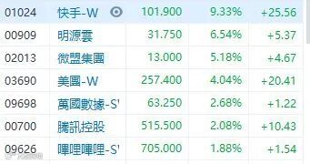 围绕着互联网等行业相关的这些产业政策,可能在今年四季度,特别是中央经济工作会议前后会进一步的落地。那时对于港股指数行情的压制可能会有所缓解,从而在今年年底前后,港股有希望形成趋势性行情。在经历8月的低迷后,除了ATMX其他科技股强势反弹,其中快手(1024)升9.33%,微盟(2013)升5.18%,网龙(777)也升3.19%。