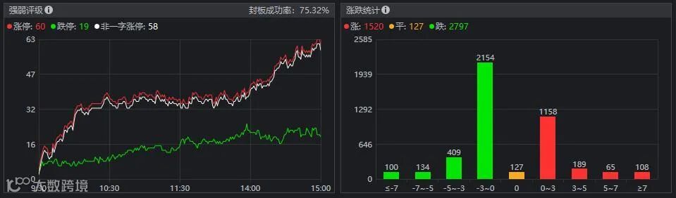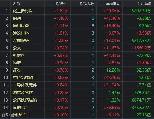 早盘,板块普跌,午后水泥、化工、半导体走强,盐湖提锂、稀土永磁盘尾拉升,白酒、医药领跌。