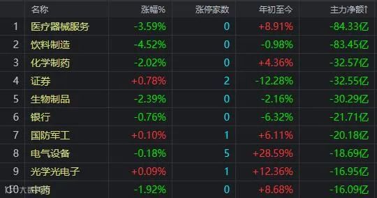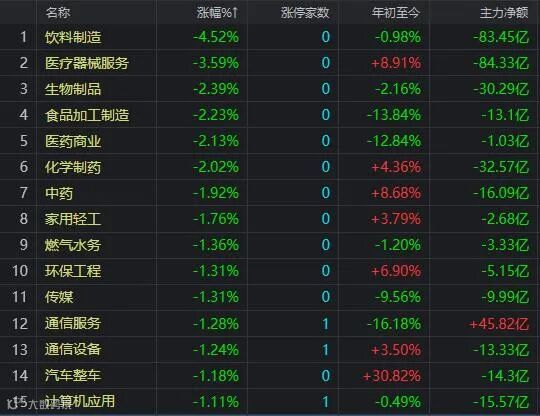 行业板块跌幅榜: