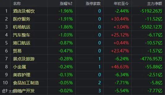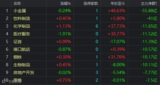 资金净流出前十的板块: