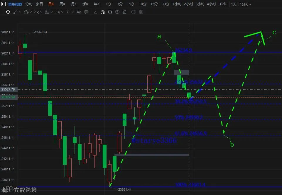 恒指,从26234开始的下跌,破了25437点,技术上已经不属于前期分析的4浪调整,而是针对整段反弹的回调修正。恒指短期暂时当作自26234高点开始的B浪调整,其强支撑在25260左右,如破,中期调整看24960-24660区间支撑。反弹先看能否重上25600-25800点。
