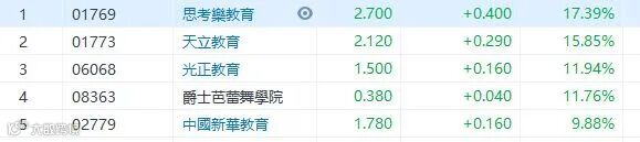 中信认为高教的营利性选择无论是从政策上还是从实操上均不存在障碍,伴随各地选择时点渐近,整体进度有望加速。营利性选择完成后,消除市场潜在担忧。土地成本和税费或有增加,但资产负债表存在重估机会、PB维度估值价值凸显、融资能力进一步加强。思考乐近日宣布,董事会会议将于2021年12月3日举行,借以考虑建议宣派及派付特别股息予公司股东。思考乐(1769)升17.39%,天立(1773)升15.85%,光正教育(6068)升11.94%,宇华(6169)也升6.09%。