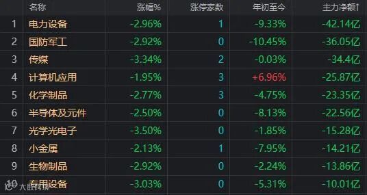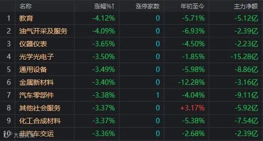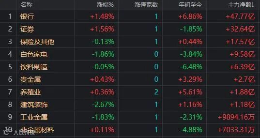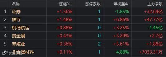 盘面上,只有证券、银行、机场航运、贵金属、养殖业、非金属材料六个行业板块上涨,其余行业板块全部下跌,其中有19个行业板块以超过3%的跌幅领跌市场,另有21个行业板块跌幅超过2%,紧跟在后。