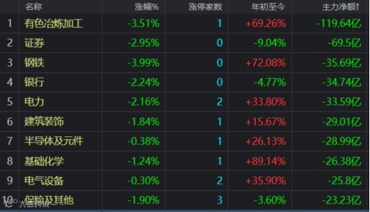 资金净流出前十名的板块: