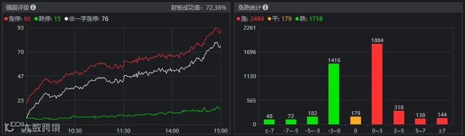 强势的板块与个股方面,光伏建筑一体化概念强势领涨,瑞和股份、森特股份、南玻等涨停这,深圳能源、清源股份、九洲集团等跟涨;网络安全板块承接昨天走势力开盘走高,全天冲高回落,任子行、科创信息、啓明星辰、国华网安等涨停,绿盟科技、熙菱信息、安恒信息、蓝盾股份等跟涨;碳中和板块低开高走,持续拉升,长源电力、雪迪龙、华银电力等涨停,冠中生态、华自科技、福建金森等跟涨;白酒概念开盘拉升,舍得酒业涨停,山西汾酒、水井坊、皇台酒业领涨;锂电池板块午后拉升,保力新、新纶科技、科达利、石大胜华、盛新锂能等十多股涨停。