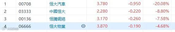 恒大汽车昨晚在港交所公告,集团一直积极与潜在买家洽谈出售集团的部分养生谷、新能源汽车生活项目及其他资产。此外,公司仍然在接触不同的潜在投资者,为集团引入资金,截至目前仍然在磋商过程中。此外,公司已退还未动工的生活配套用地和工业用地合计266.33万平方米,涉及7个项目,总金额人民币12.84亿元。上述退地款主要用于工程建设和支付农民工工资、支付剩余地块土地款,部分退地款已被政府没收。恒大汽车(708)跌20.08%,收市报3.78元。恒大系普跌,恒大(3333)跌8.8%,恒腾(136)跌7.58%﹐恒大物业(6666)跌4.68%。