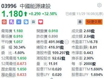 中国能建发布补充公告,本次投资的全资子公司尚未设立,需经相关政府部门审批核准或备案;拟开展的业务处于筹备或待整合状态,在实际运营过程中可能面临诸多不确定因素,存在一定的风险;截至目前,公司开展数字科技业务和氢能业务实现的营业收入,在公司总体营业收入中占比较小,对公司2021年全年业绩不构成重大影响。本次对外投资尚存在不确定性。中国能建(3996)升32.58%,收市报1.18元。