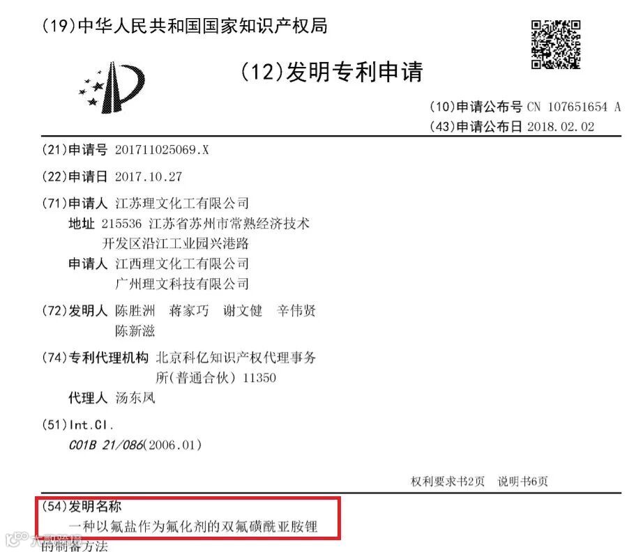 理文化工在2018年,申请了一种生产LiFSI的专利,在国生产者不多。据了解,普通的电解液添加剂(FEC)(VC)毛利大约30%,而LiFSI的毛利达到50%。