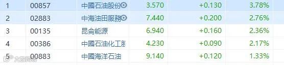 中石油公布,由中国石油工程建设公司参与建设的阿穆尔天然气处理厂(AGPP)项目第一列生产线投产。加上近期油价造好,WTI原油升破70元,中石油(857)升3.78%,收市报3.57元。中石化(386)升2.17%,中海油(883)也升1.33%。