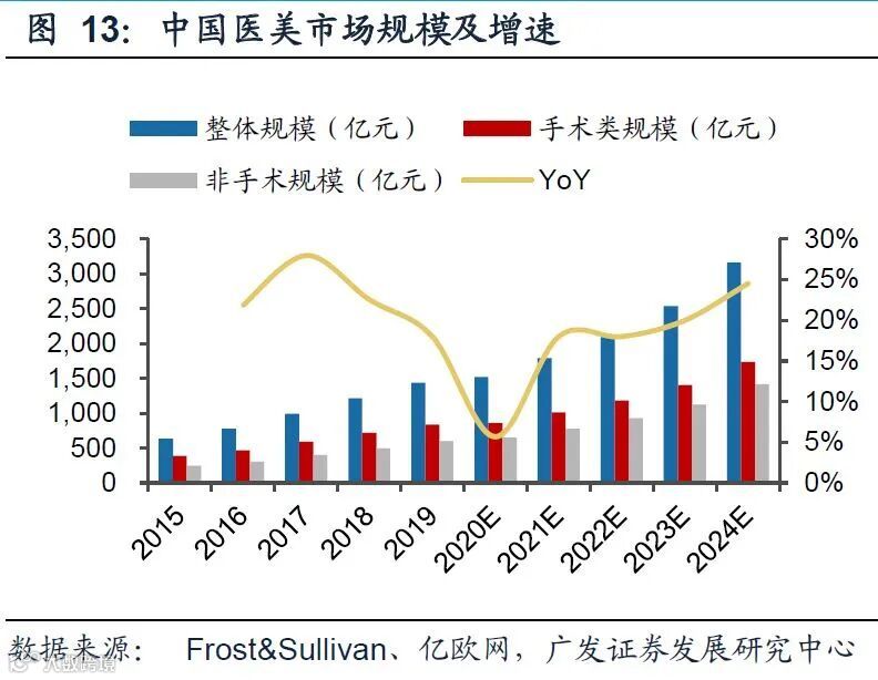 2019年,中国医疗美容市场规模达到1769亿元,增长率放缓至 22.2%;2019年中国医美用户1367.2万人,预测2023年医美用户达2548.3万人。