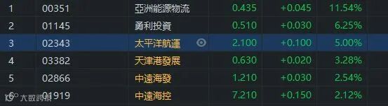据中国港口协会统计,2月份,八大枢纽港口集装箱吞吐量较2020年2月增长37.2%,较2019年增长9.9%。其中,外贸增长37.9%,内贸增长34.7%。自1月29日以来,中国出口集装箱运价指数(CCFI)美西航线已经连续5周站在1330点之上。波罗的海指数上升,也对航运港口股有利。其中太平洋航运(02343)升5%,收市报2.1元。中远海发(02866)及中远海控(01919)都升超过2%。