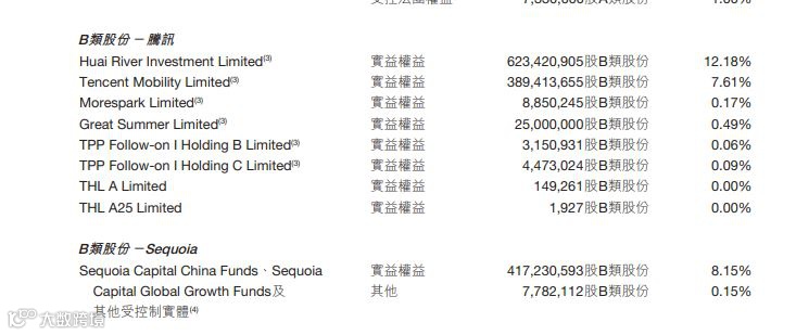这里比较有趣的地方是由于王兴本身没有B股,所以如果美团要以先旧后新方式发行,就要找股东借入现有的B股,而现有持有的B股股东中,只有腾讯及红杉资本有超过5%B股,所以是次先旧后新将会由主要股东腾讯借出股份。