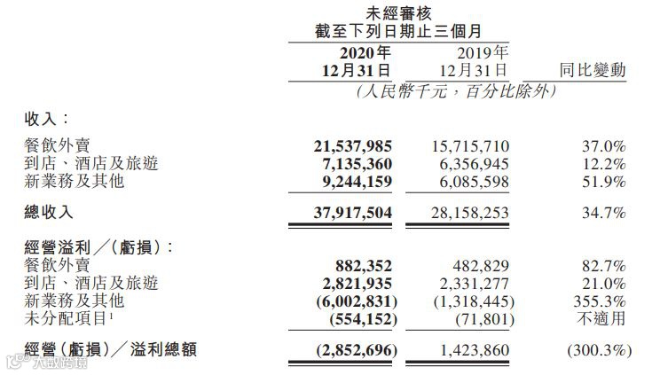 不过如果按照上次业绩中所讲,在2,000多个市县迅及下沈城市加速推广社区电商模式「美团优选」,致令新业务及其他分部的经营亏损由2019年的人民币67 亿元扩大至2020年的人民币109亿元,而经营利润率同比下降6.7个百分点。