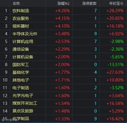 盘面上,第三代半导体板块开盘拉升,智光电气、天富能源、派瑞股份、赛微电子等领涨;鸿蒙概念持续拉升,润和软件、诚迈科技、九联科技、传智教育等领涨;国産操作系统单边上涨,中国软件、拓维信息等涨停;啤酒概念保持强势,惠泉啤酒涨停,青岛啤酒、珠江啤酒、乐惠国际等跟涨;养老概念低开高走,海南椰岛、旷达科技涨停;白酒概念振荡走强,皇台酒业、老白干酒、青青稞酒等涨停;云游戏板块午后拉升,惠程科技此前涨停,游族网络、中青宝、朗玛信息跟涨;医美概念下挫走弱,奥园美谷、朗姿股份、哈三联跌停,昊海生科、华熙生物等跟跌;赛马概念午后持续走弱,中体产业、海南橡胶、鸿博股份、亚通股份跟跌。