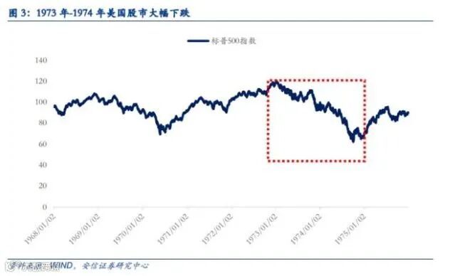 70年代初期,美国经济内忧外患,GDP实际增速发生断崖式下滑,从1973年的5.6%跌至1974年的-0.5%,同时爆发了严重的通货膨胀,CPI同比增速从1972年的3.2%快速攀升至1974年的11.0%。