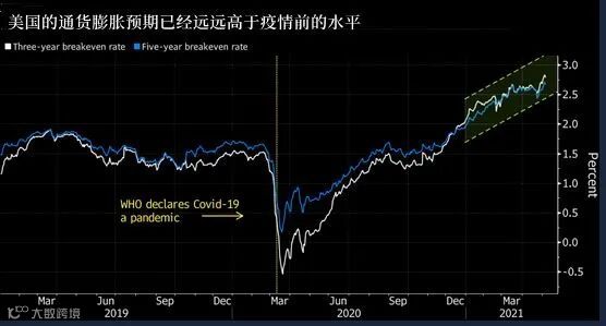 最近,美国通胀预期持续上涨,创下2008年新高,大宗商品价格累创新高。铜价铁矿石等价格上涨幅度惊人,原材料价格上升,业品价格上涨给经济带来负向冲击,压制工业企业利润。虽然在上年低基期下,中美第一季GDP都有所增长,但是中国预期今日GDP增长6%,可见政府也不看好之后表现。