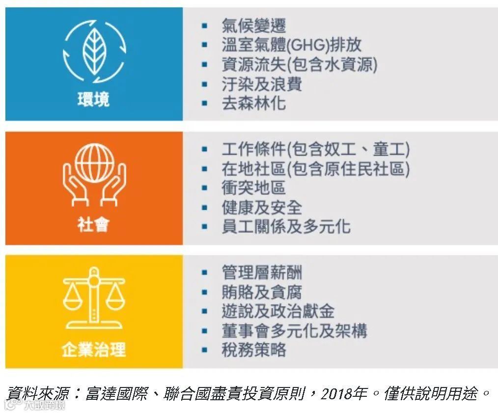 市场逐渐认同ESG与企业长期成长潜力有紧密的相关性,用ESG辨别及制定具体永续投资方案成了共识。