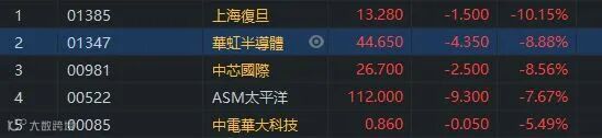 据半导体市场研调机构IC Insights最新发布数据预测,2021年全球IC市场规模将达4415亿美元,同比增12%,创下历史新高纪录。IC Insights表示,2020年疫情全球大流行的背景下,笔记本计算机、大屏智能手机的需求,以及数据中心市场对于服务器的需求,带动2020年IC市场增长10%。在台积电与三星扩充7纳米及5纳米产能驱动下,机构预期,2021年半导体产业资本支出金额将达1250亿美元,同比增长15%。半导体股近期强势,今日出现回调。上海复旦(01385)跌超过10%,华虹(01347)及中芯(00981)都超过8%。