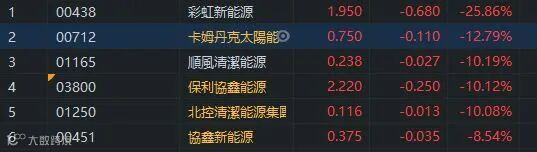 1月22日,国家能源集团、中国国新、中国东方联合发起的国能新能源产业投资基金合伙协议在北京签署,该基金整体规模为100.2亿元,主要投资方向为风电、光伏产业,以及氢能、储能、综合智慧能源等新兴产业的新技术项目。该笔基金投资运作后,预计将撬动约500亿元的资金流向新能源产业,可促使超过600万千瓦的风电、光伏项目落地。光伏股连日大涨后出现回调,卡姆丹克(00712)跌超过12%。顺风清洁能源(01165)、保利协鑫(03800)及北控清洁能源(01250)跌幅都超过10%。