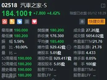 汽车之家每股定价176.3港元,每手100股,较隔夜美股收盘价折价9.6%。公开发售阶段汽车之家获10.71倍认购,共接获38100份有效申请,一手中签率35%,认购100手稳中一手。汽车之家(02518)富途暗盘价收184.1元,每手不计手续费赚780元。