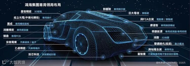 早前摩根大通预计,鸿海将在Apple Car 扮演重要的角色。早前鸿海宣布与吉利成立合资公司,为汽车产业提供全新一站式服务,包括汽车整车、零组件、智慧控制系统、汽车生态系统和电动车全产业链流程等,有助于客户更快将电动车推向市场,也为鸿海进军电动车市场提供了更多创造先河。