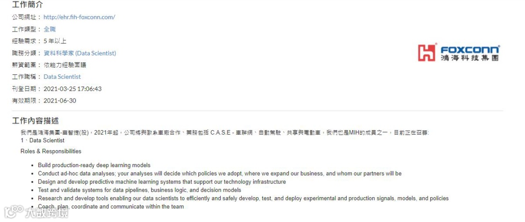 而富智康旗下的富智捷最近亦有招聘资告公布「…2021年起,公司将与欧系车厂合作、业务包括 C.A.S.E – 车聨网、自动驾驶、共享与电动车,我们也是MIH的成员之一…」所以可以预期由2019年成立的富智捷公司,到今年就会成就收成期,并即将发布与其他车厂的自动驾驶合作,并成为公司新的业务增长点。