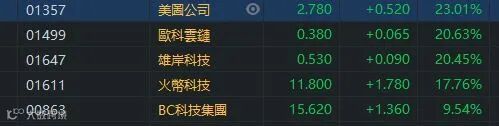 随着比特币的大涨及「名人效应」驱动,港股区块链概念板块指数从2021年初至今涨势喜人。区块链股普涨,美图(01357)升超23%,欧科云链(01499)及雄岸(01647)升幅都超过20%。