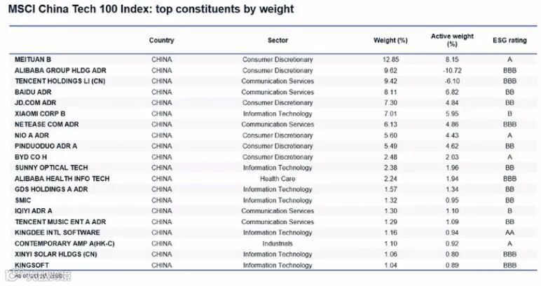 还顾香港上市的ETF中,三星中证中国龙网ETF(02812.HK)头10大持仓中头7间亦与上述MSCI中国科技100指数中相同,而且如美团﹑腾讯﹑阿里巴巴﹑拼多多﹑等占比比例更大,投资者亦可以留意。