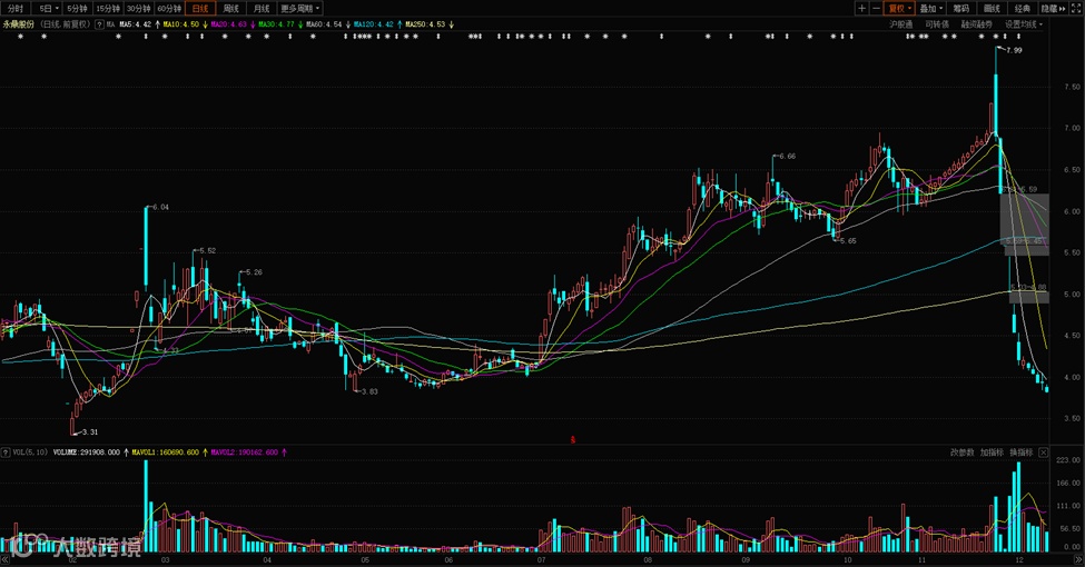 永鼎股份从11月25日的7.99元到今天3.82元,跌去52%。