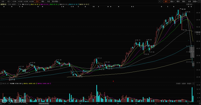 朗博科技也是崩盘式下跌,已连续8个交易日跌停,其中7个一字跌停,如今股价报26.97元,这一价格已较今年11月的高点已经跌去了60%。在此之前,朗博科技股价自年内低位也翻了3倍以上。