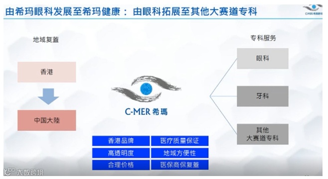 收购牙科符合希玛重新定位,从中高端眼科医疗集团升级为中高端医疗集团,仍以眼科为主,同时进入牙科赛道,预料最少进入三种专科赛道,由香港到深圳复制到全国去。