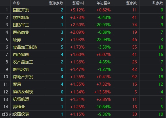 受外围市场影响,指数早盘低开低走,10点半后见底反弹,午后震荡盘升。园区开发、饮料制造、国防军工、医药商业、证券等板块位列涨幅榜,有色、钢铁、煤炭板块转向跌幅榜。养老概念、医美、白酒、证券、国防军工等多板块活跃。两市个股涨多跌少,涨幅大于7%个股112只,跌幅大于7%个股39只,两市成交额合计8433亿元。截至收盘,上证指数涨0.40%,报3441.85点,深证成指涨0.35%,报13966.79点,创业板指跌0.01%,报2921.34点。