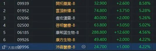 沛嘉医疗公布年度业绩,截至2020年12月31日止年度,收益约为人民币3866万元,同比增长106.7%;毛利约为人民币2522万元,同比增长110%。同时多个研究项目取得重大进展,沛嘉医疗(09996)升4.22%,收市报24.7元。其他生物医药股普涨,其中开拓药业(09939)升超过8%,啓明医疗(02500)及云顶新耀(01952)都升超过5%。