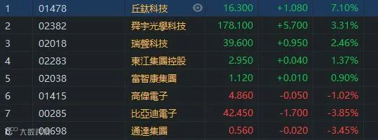 丘钛科技2020全年营业收入174亿元人民币,同比增长32.1%;净利润8.4亿元,同比增长54.9%。在疫情和智能手机出货量下滑的挑战下,丘钛收入和利润均创历史新高。丘钛科技(01478)升7.23%,收市报16.32元。手机概念股中瑞声科技(02018)也升超过2%。