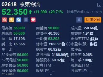 京东物流发布公告,公司发行约6.09亿股股份,每股定价40.36港元,每手100股,预期5月28日上市。公开发售阶段京东物流获715.61倍认购,分配至公开发售的发售股份最终数目为5482.45万股,占发售股份总数的9%(任何超额配股权获行使前)。合共接获136.49万份有效申请,一手中签率8%,认购300手稳中一手。Cathie Wood 旗下太空科技主题ETFARKX,于5月24日建仓京东物流,共合380万股,涉及1,975.79万美元,摺合相当于1.5亿港元。京东物流富途暗盘价收52.35元,升29.71%,是个好开始,市场气氛或者回来了。