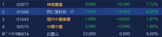 商务部、国家中医药管理局等7部门近日联合印发《关于支持国家中医药服务出口基地高质量发展若干措施的通知》,从完善体制机制、创新支持政策、提升便利化水平、拓展国际合作空间、加强人才培养和激励五个方面提出18条具体政策措施,着力完善发展环境,形成部门政策合力,支持国家中医药服务出口基地大力发展中医药服务贸易,推动中医药服务走向世界。中医药股又再炒起,神威(2877)升7.72%,同仁堂科技(1666)升6%。