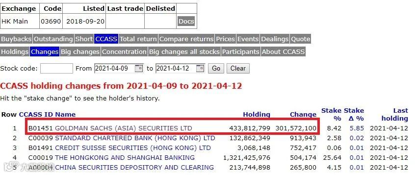 中央结算系统(CCASS)显示,美团近日仓位大变,有投资者从实名持股股份移至CCASS系统内,由高盛持仓,涉及5.85%或3.01亿股,现价市值达845亿元,目前除创办人王兴外,仅有腾讯和红杉资本持有逾5%的美团股份。市场传闻美团正部署配股,涉及金额达100亿美元。上次腾讯被大股东配售也是先把股票移至CCASS系统,因此市场出现恐慌,美团(03690)股价急跌,收市跌7.44%,报276元。