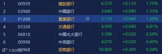 富瑞发研报指,3月份的数据证实了该行对社会融资规模(TSF)增速放缓的看法,但人行将会维持银行间流动性稳定。由于强劲的需求,新贷款略有下降,但贷款增长将进一步放缓。对内地银行保持乐观,首选为建行及农行。建行(00939)升1.7%,收市报6.57元,农行(01288)升1.3%,收市报3.11元。