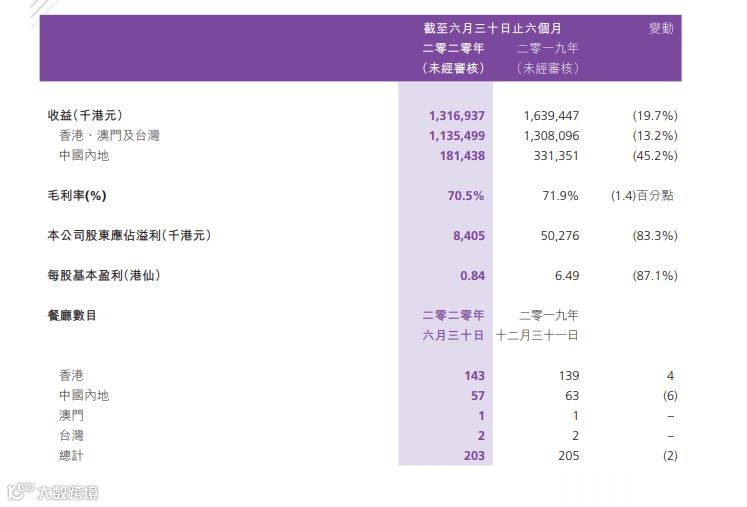 另外,集團亦因應市場趨勢及顧客需求推出新品牌,其中包括集團於8月初在深圳開設新餐廳「冬悦」,專營台式麻辣火鍋,旨在抓住在中國內地廣受歡迎的「火鍋文化」,雖然現時只有在福田區一間分店而且需要時間證明,但亦有望成為公司新的增長點。