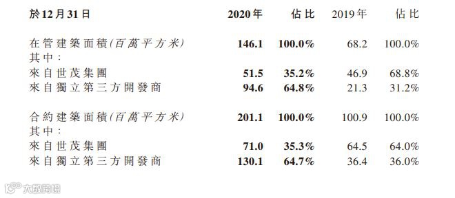 3. 于2020年12月31日,本公司物业管理服务的在管建筑面积为146.1百万平方米,较2019年12月31日约68.2百万平方米增长约114.4%;本公司 的合约建筑面积约为201.1百万平方米,较2019年12月31日约100.9百万平方米增长约99.4%。