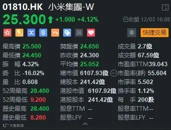 小米在公告中称,建议发行8.55亿美元2027年到期可转债,发行债券所得款项净约8.896亿美元;同意以每股23.70港元配售10亿股股份,认购事项所得款项净额约31亿美元。昨日小米巨额配股大跌,不少投资者涌入抄底,成交额376亿元。手握现金300亿,小米为何还要巨额融资?小编拭目以待。今日小米(01810.HK)仍见有支持,升4.12%,收市报25.3元。