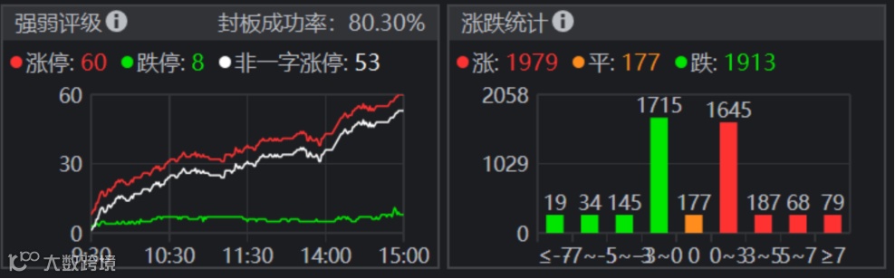 2日,指数早盘沪强深弱分化明显,沪指盘中攻破3458点创下阶段新高,然后全天震荡,创业板指早上下探午后回升。两市个股涨跌互半,涨跌比1:1;涨幅大于7%的个股79只,跌幅大于7%的个股19只;涨停个股有60只,跌停个股8只。两市合计成交额8810亿元,与昨天基本持平。截至收盘,上证指数跌0.07%,报3449.38点,深证成指涨0.22%,报13961.58点,创业板指跌0.57%,报2682.97点。