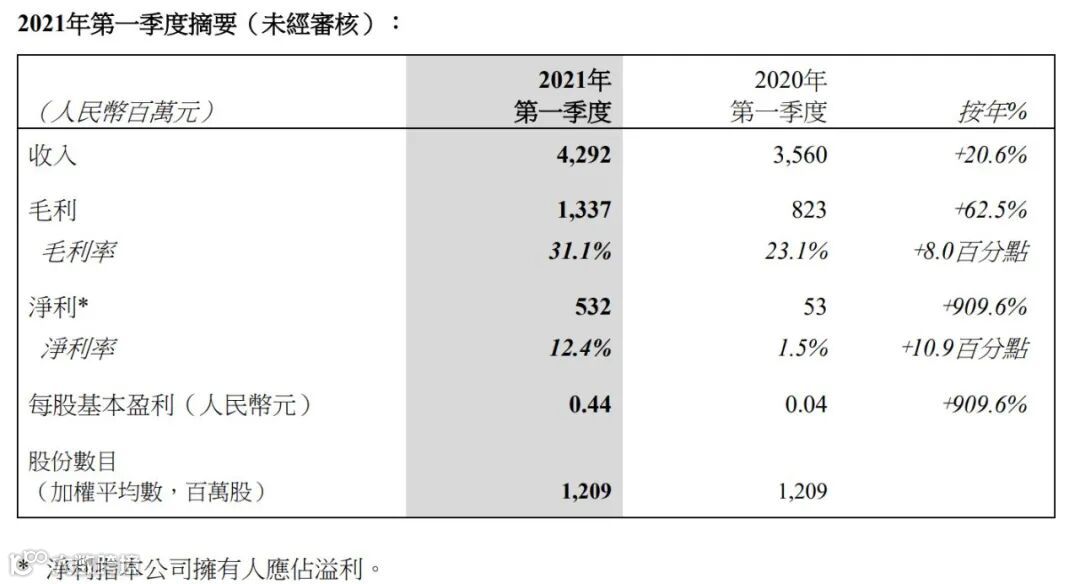 小编4月底时写文章介绍过瑞声,说其已渡过最困难时期,目前正待复甦之时,星期五中午公布首季业绩正是证明这一点。瑞声科技公布了2021年第一季度的业绩,实现收入42.9亿﹙人民币.下同﹚,净利润5.32亿,大增909.6%。瑞声的业绩符合之前公司发盈喜时的目标,小编在此跟大家一起探讨瑞声首季业绩及其发展的方向。