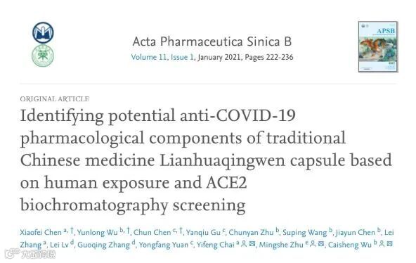 厦门大学药学院吴彩胜副教授、海军军医大学柴逸峰教授团队等的研究成果《基于人体暴露和ACE2生物色谱筛选中药连花清瘟胶囊的抗COVID -19药理活性成分》在药学顶级期刊《药学学报》发表。
